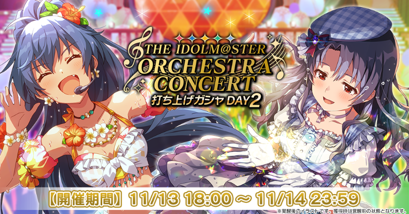 無償ミリオンジュエルでも引ける4回限定の『THE IDOLM@STER ORCHESTRA CONCERT打ち上げガシャ DAY2』を開催中!