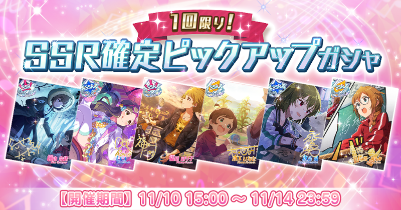 『1回限り!SSR確定ピックアップガシャ』を開催中です!