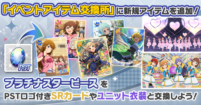 プラチナスターピースで過去のPSTロゴ付SRカードやユニットメンバーの衣装を入手できますよ♪