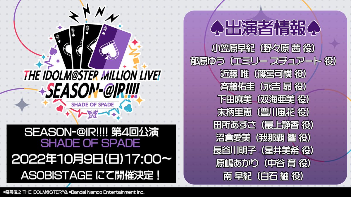 「MILLION THEATER SEASON」に関する #ミリシタ の新しい試みとして開催したオンライン限定有料イベントが、SHADE OF SPADEでも開催決定!