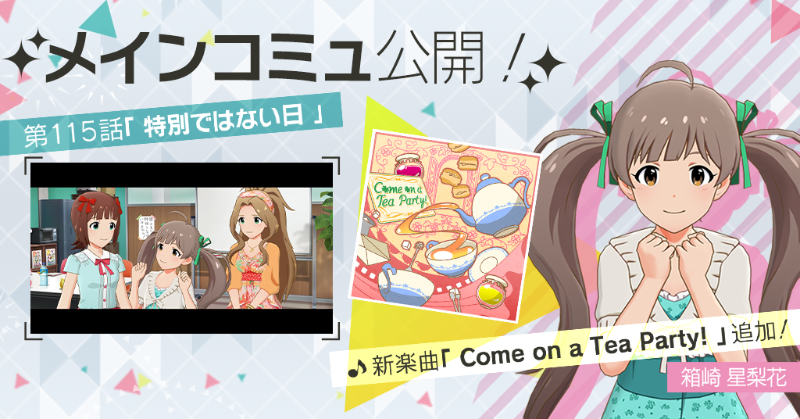 第115話をプレイすると、箱崎星梨花ちゃんが歌唱する楽曲『Come on a Tea Party!』をライブで選択できるようになりますよ♪