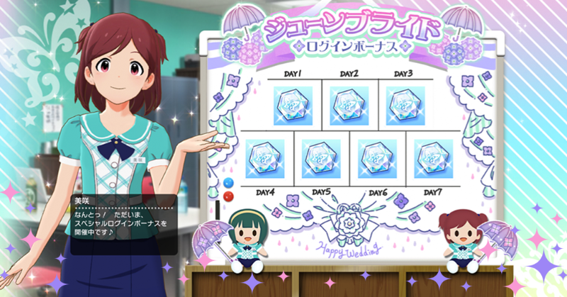 2022/06/01(水) ~ 2022/06/07(火)まで、『2022年 ジューンブライドログインボーナス』を開催中です!
