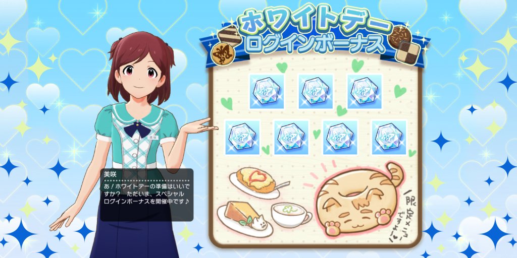 2021/03/08(月)~ 2021/03/14(日)まで、『ホワイトデーログインボーナス』を開催中です!