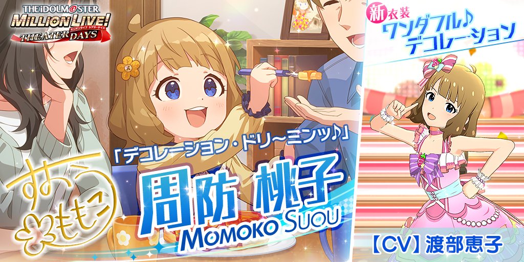 第82話をプレイすると、周防桃子ちゃんが歌唱する楽曲『デコレーション・ドリ~ミンッ♪』をライブで選択できるようになりますよ♪