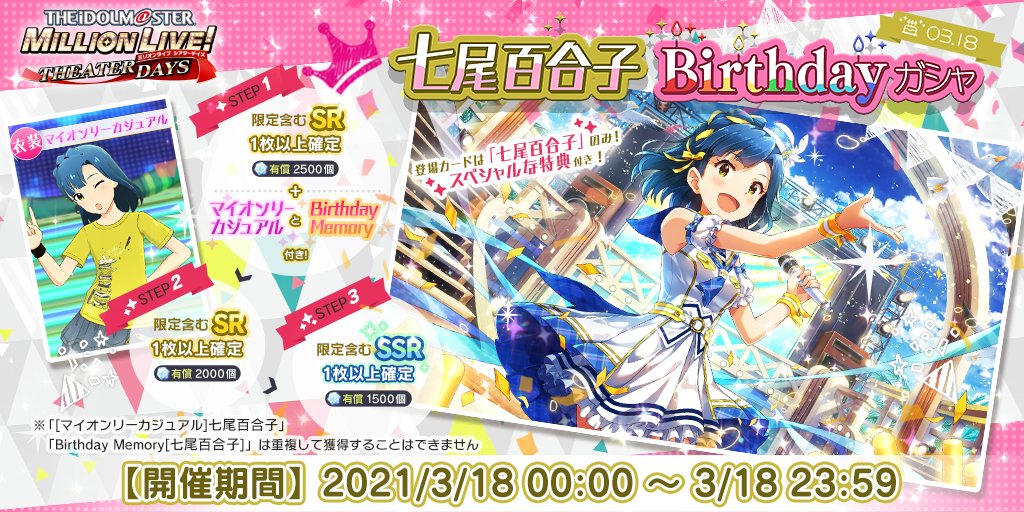 『七尾百合子Birthdayガシャ』開催中!