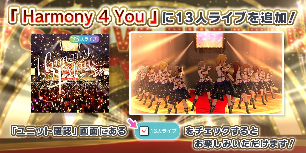 楽曲「Harmony 4 You」に13人ライブを追加しました!