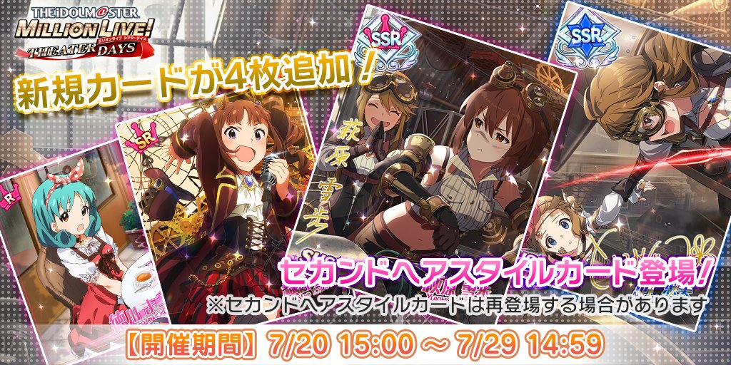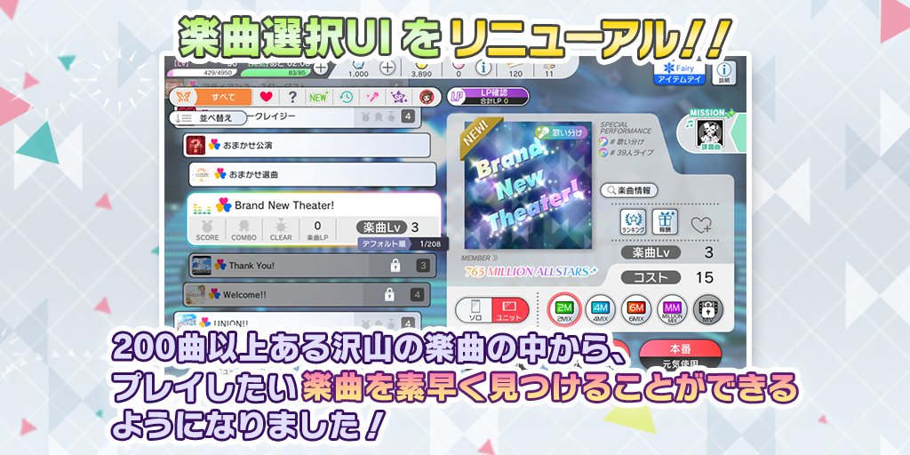 2021/07/15(木)13:30頃に、Ver. 4.0.001の配信を開始させていただきました。詳細はアプリ内のお知らせをご確認下さい。なお、強制アップデートは2021/07/16(金)13:00頃に実施を予定しております。millionlive.idolmaster.jp/theaterdays/