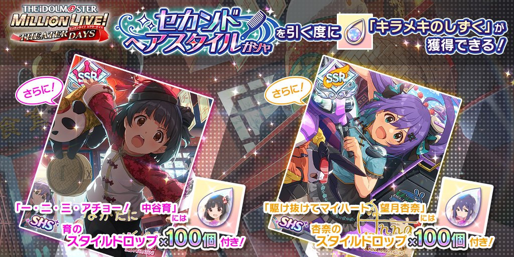 育ちゃんのSSRカードが、ただいま開催中の『セカンドヘアスタイルガシャ』で獲得できますよ!
