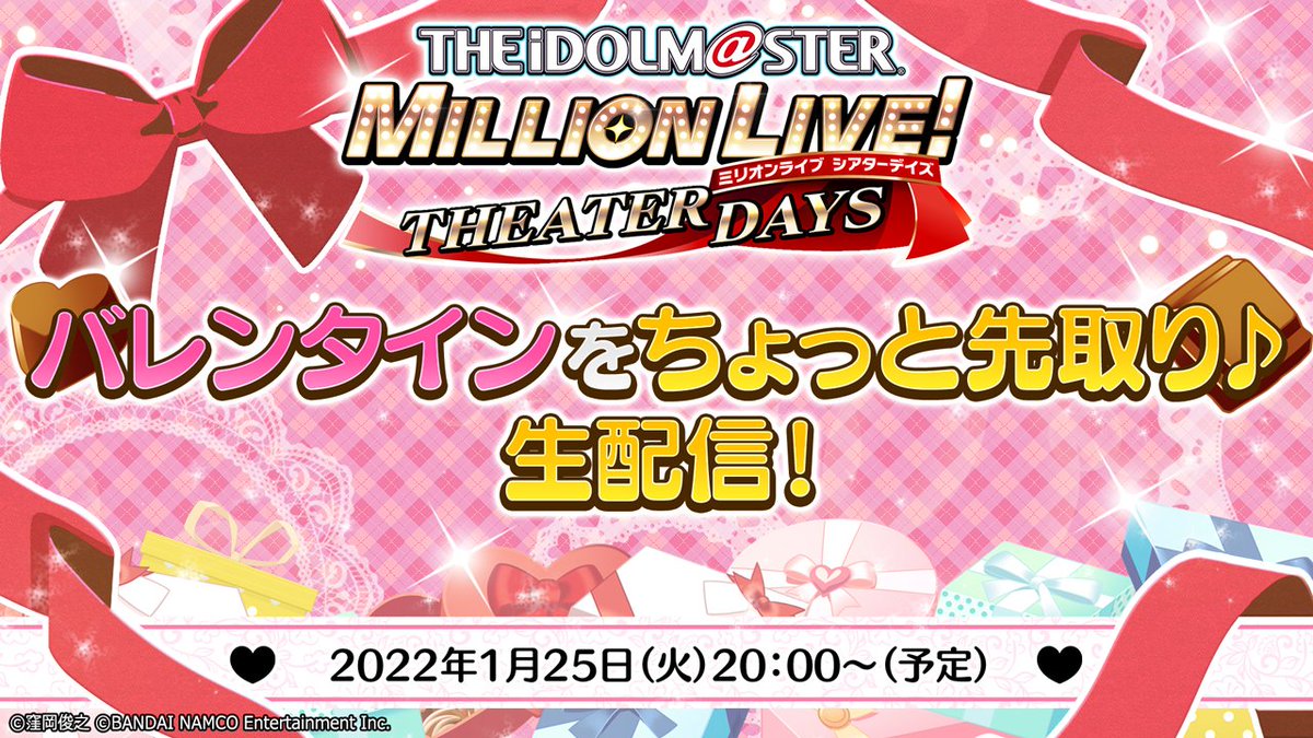 「ミリシタ バレンタインをちょっと先取り♪生配信」の配信決定🍫