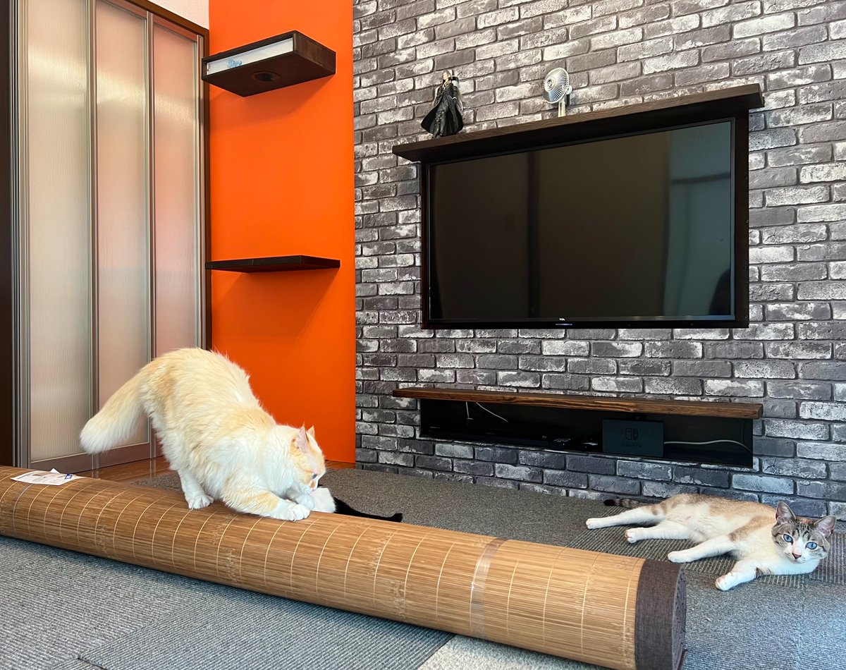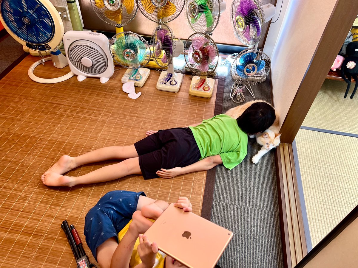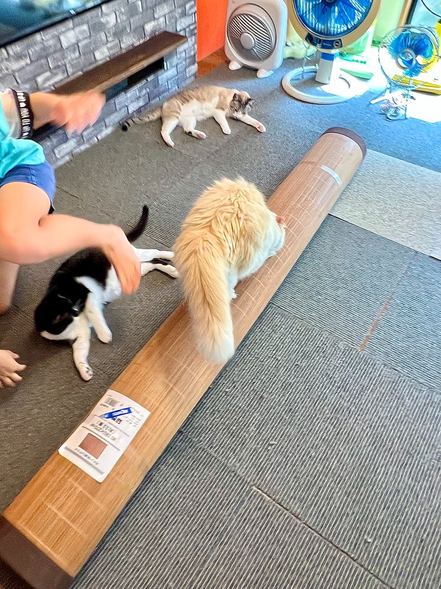 子ども達が小学校から帰ってきた途端、ネコ達コレですわ。