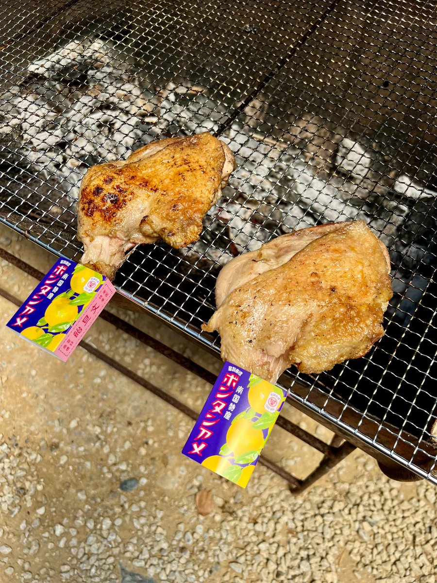 肉の持ち手に付けるものがなくて困ってたけど、お土産のボンタンアメに救われた