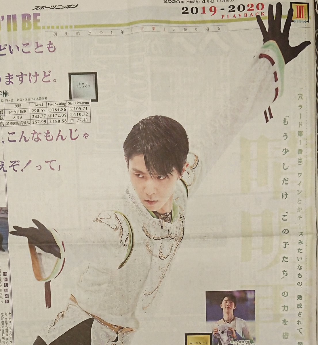 6日付東京版です。フィギュアスケートの #羽生結弦 の2019―2020シーズン回顧第3弾。全日本選手と四大陸選手権です。