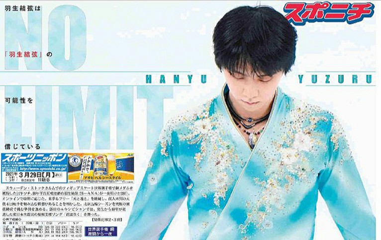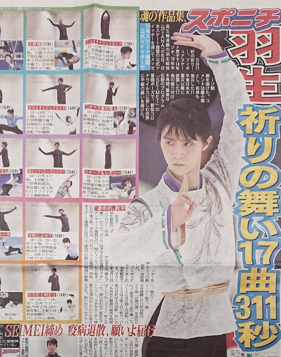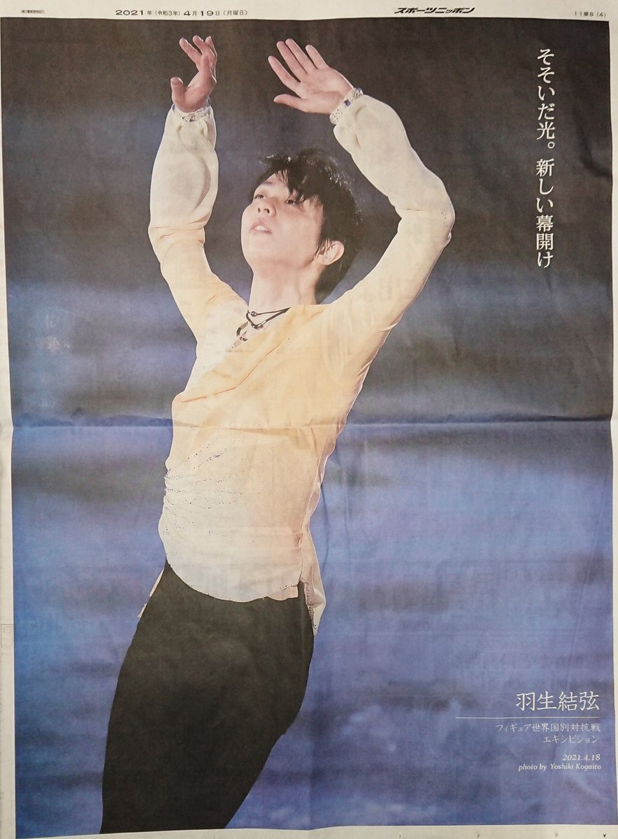 東京版1面はフィギュアスケートの #羽生結弦 が登場。6日、日本スケート連盟の公式ツイッターを通じて、311秒のメッセージ動画を届けました。