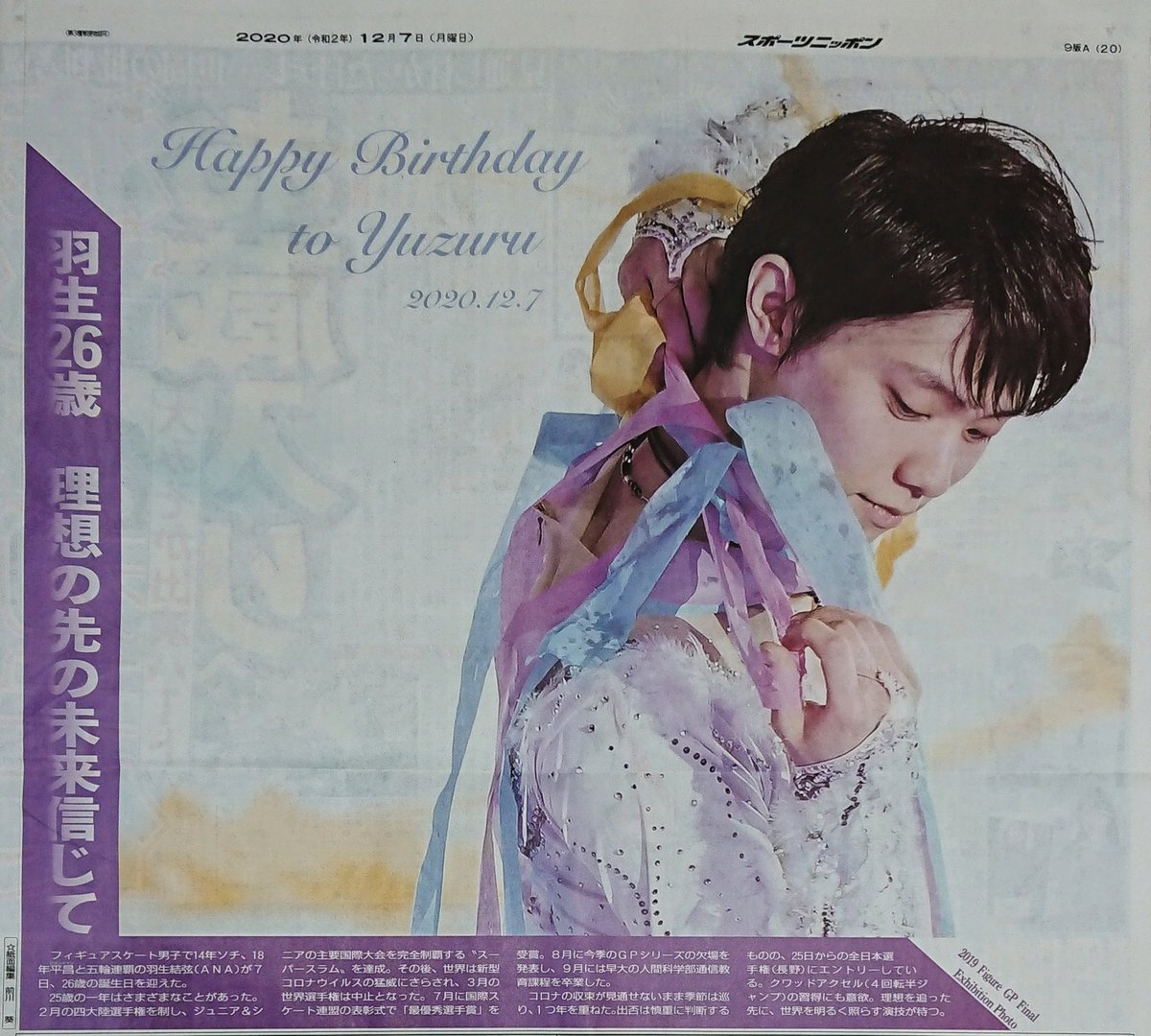 フィギュアスケートの #羽生結弦 は、きょう26歳の誕生日。特別紙面です。