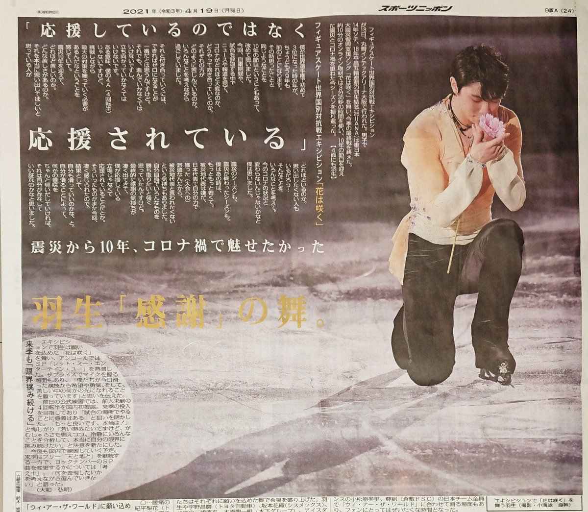 きょう13日付東京特報版。フィギュアスケートの #羽生結弦 の全面ピンナップです。