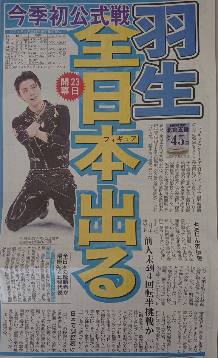 きょう21日付東京版。