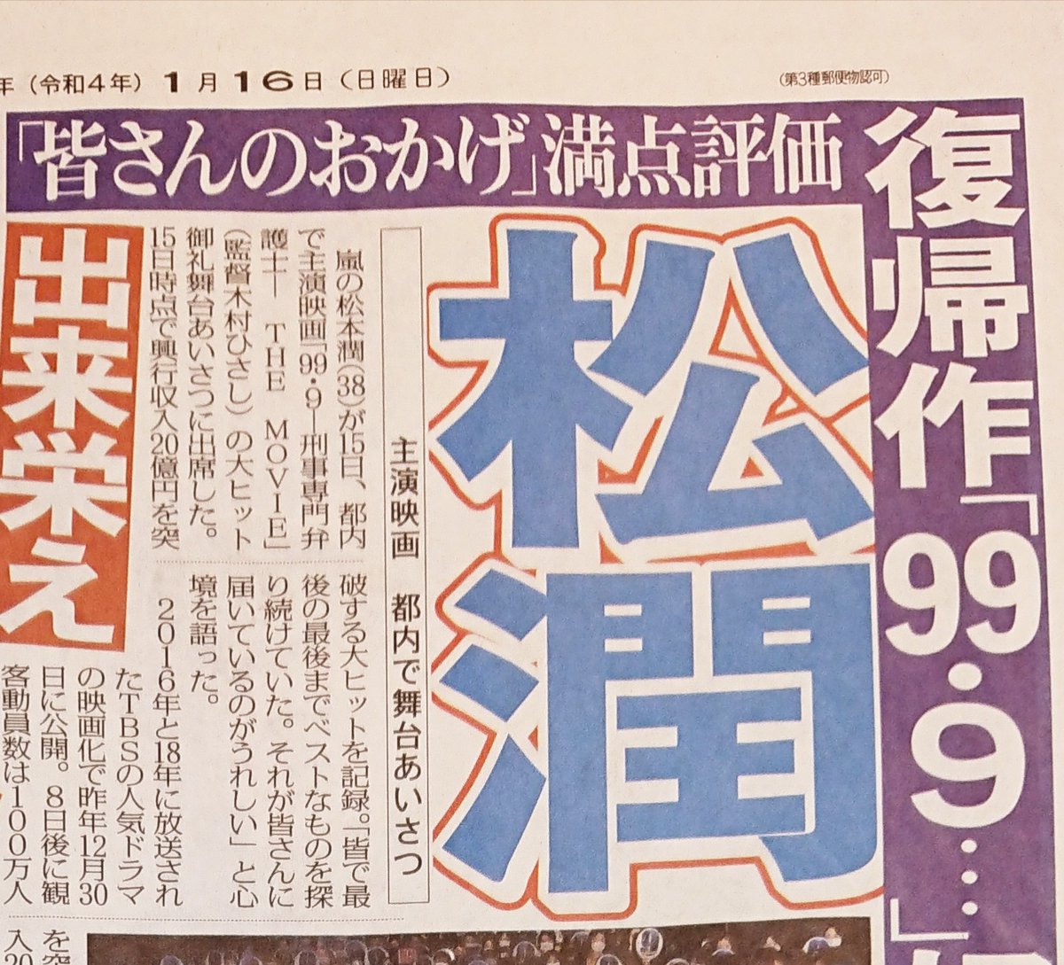 昨年11月に公開された #嵐 のライブ映画「#ARASHI 5×20 FILM」が、2021年の #実写映画 の興行収入で1位となりました。#日本映画製作者連盟(映連)が25日、21年の映画興収を発表。同作が邦画・洋画を通じての実写映画1位で、ライブ映画の1位は史上初の快挙です。