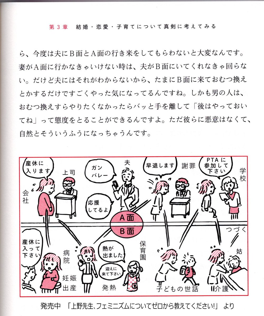 私はこのナインティナインの矢部浩之氏の六本木ヒルズの花壇の話が大好きで、これも矢部氏にとっては子どもと遊ぶ事でA面的思考が一時停止になって、視点・視界・見える景色がB面に反転した、という話だと思う。
