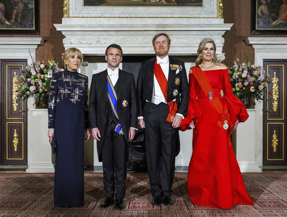 真紅のドレスはオランダのデザイナー、Claes Iversen の作品で、オフショルダー、たっぷりとした袖が印象的。赤いバッグはバレンチノ。勲章の重みを一時保留にし、ファッション的観点に徹して見ると、大綬含めたトータル赤、アンティークパールの王冠、ジュエリーが → twitter.com/victoria1819/s…
