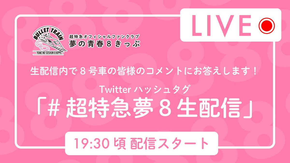 超特急アプリリリースを記念して本日8/8(土)19:30頃より #夢8 会員限定の緊急生配信決定!