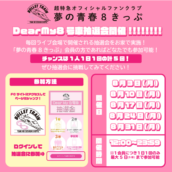 ★ #夢8 会員限定“「Dear My 8号車」抽選会”8/10(月)の回スタート!!