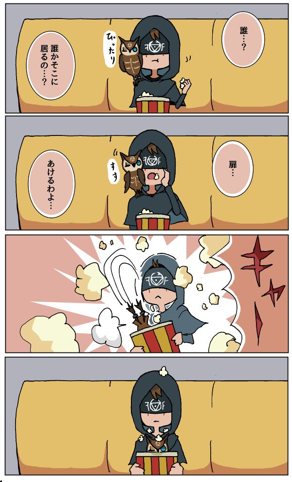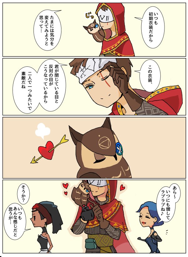 くしゃみで兜?がズレたのを直す→使い鳥へ左腕にとまれと指示したのにからかわれる→ここだよ〜!と言わんばかりの使い鳥の飛び跳ね→可愛いです有難う