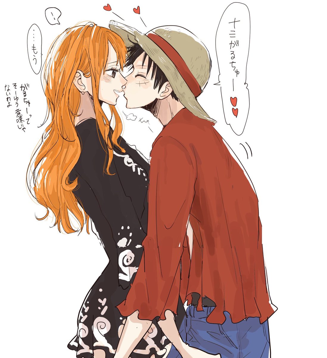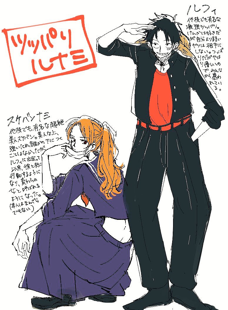 スケバンナミさん描こうとしてどうせならと思ってルフィさんも入れた ツッパリルナミ