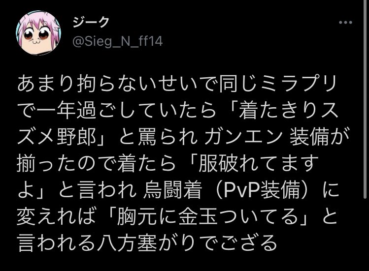 /p すいません...先週から何も装備が更新出来てなくて... <wait.4>