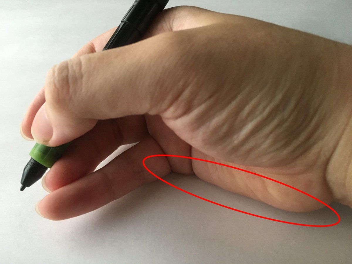 画像のように赤い部分を接地させて描いている人は、ペン先の浮かせ量が 恐らく小さいので、筆圧カーブを設定していないと「ハネ」が出やすいかもしれません。※事実私がそうであるように