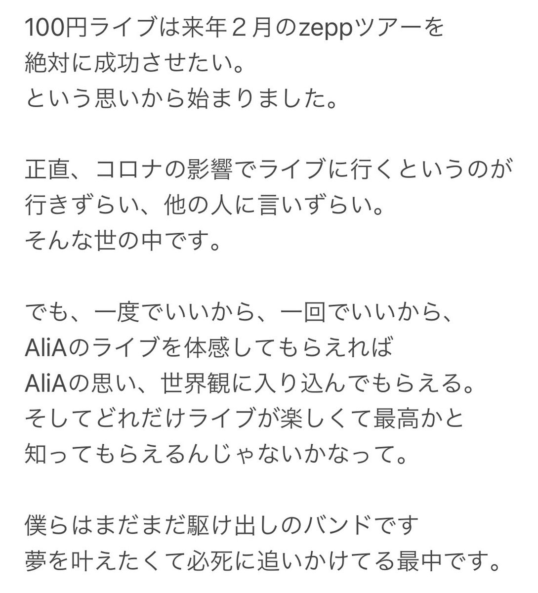 #AliA100円ライブ への想い。