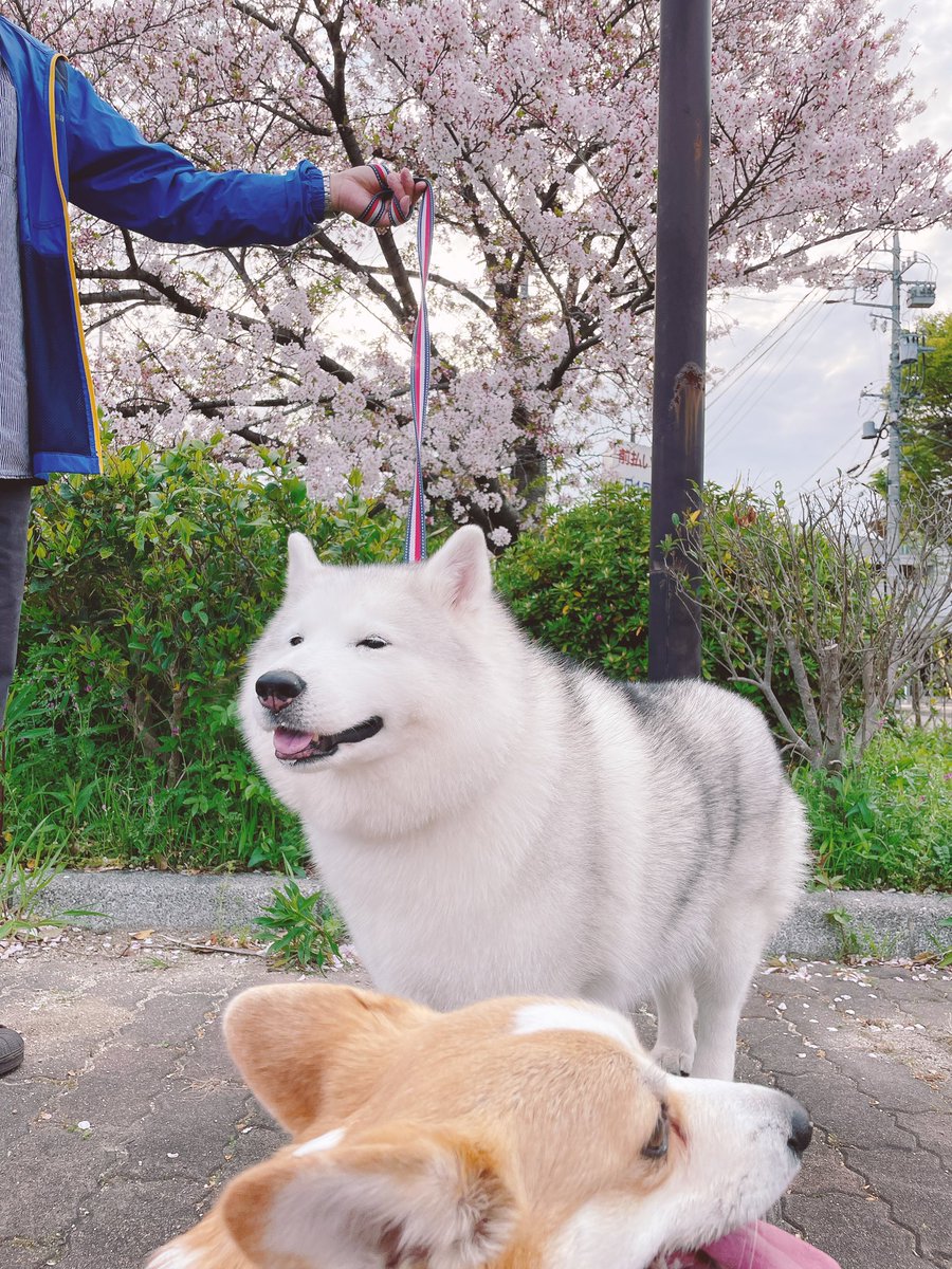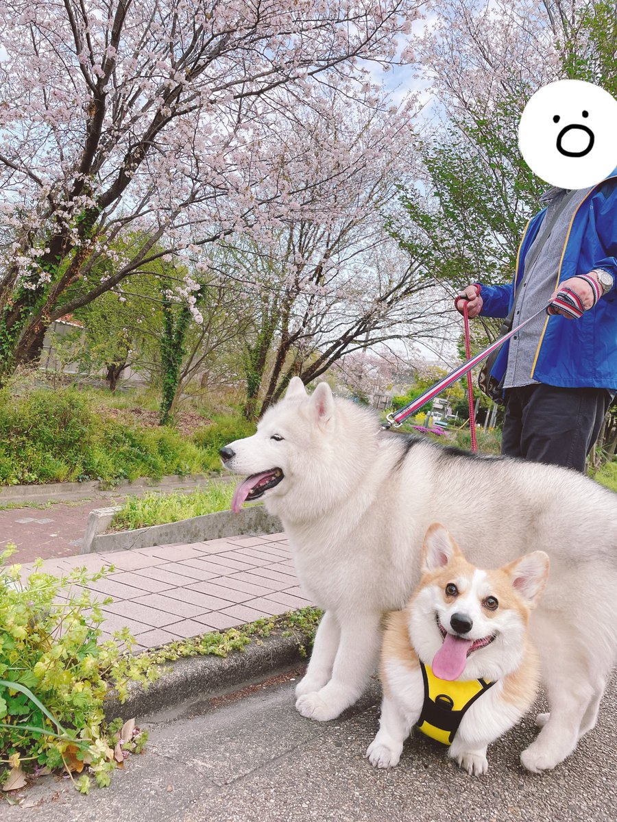 飼い主写ってますがやっと2匹と撮れました👏お散歩ついでにお花見✨