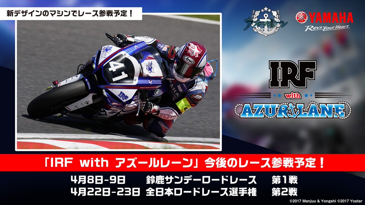 アズールレーン×ヤマハ発動機コラボチーム「IRF with アズールレーン」は、今年も鈴鹿8時間耐久ロードレースの参戦を目指して活動します🏍