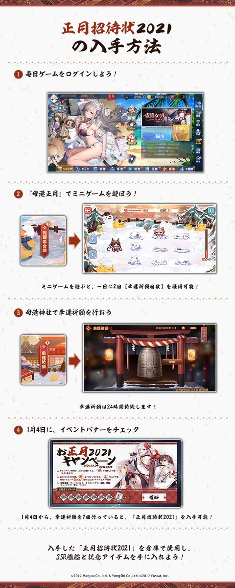 「母港正月」の「幸運祈願」を7回行うと、