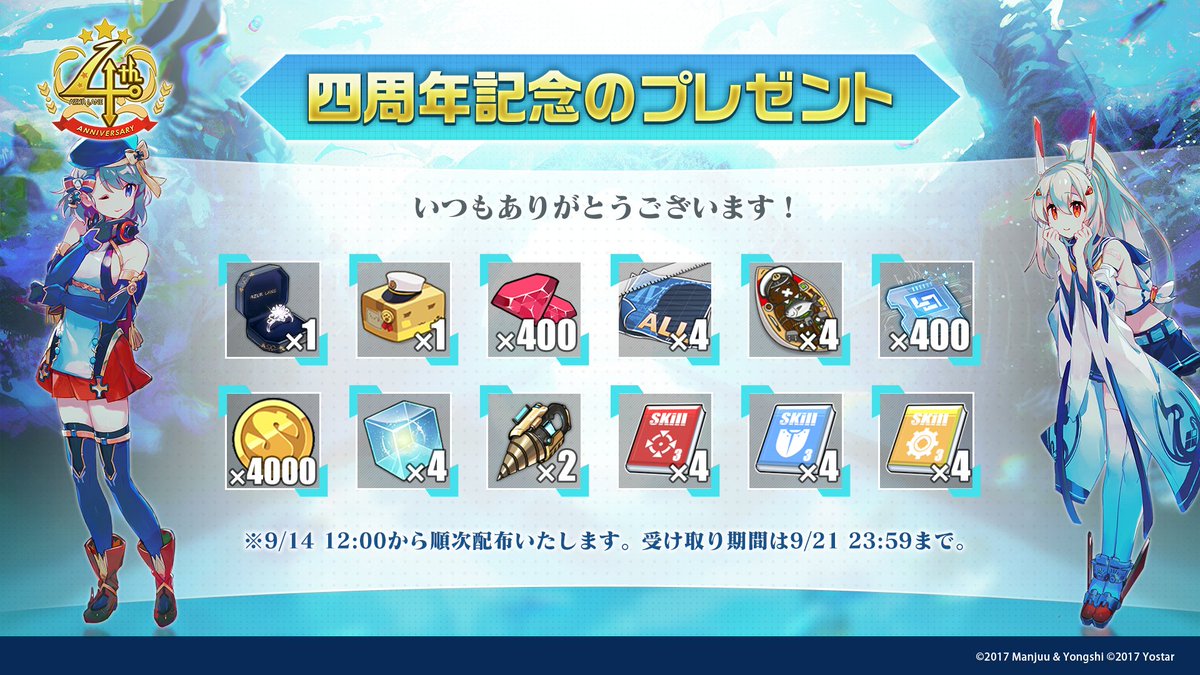 配信4周年を記念して、下記アイテムを順次メールにてプレゼントします!