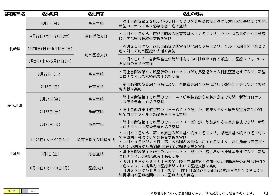 #沖縄県 における新型コロナウイルス感染拡大を受け、8月18日から自衛隊の看護官など計31名により県内3か所において医療支援を実施してきましたが、本日、沖縄県からの要請を受け、撤収しました。