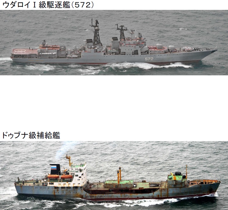3月26日(木)午後8時頃、海上自衛隊第1護衛隊所属「むらさめ」(横須賀)及び第1航空群所属「P-3C」(鹿屋)が、下対馬の南西約200kmの海域を北東進するロシア海軍計2隻を確認した。