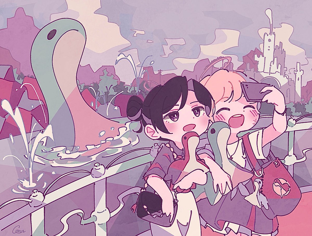 マシュマロからネッシーを取り合うワトレイちゃん🤜💥🤛 気力の問題で完璧なリクエスト通りには描けませんでした、すみません💦 マシュマロありがとうございました!