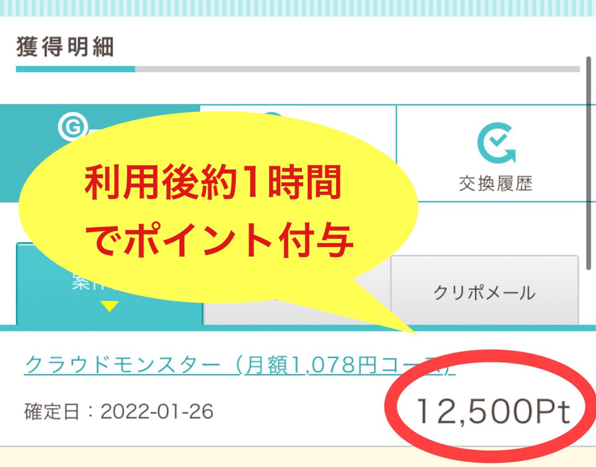 なんと1時間でポイント付与✨