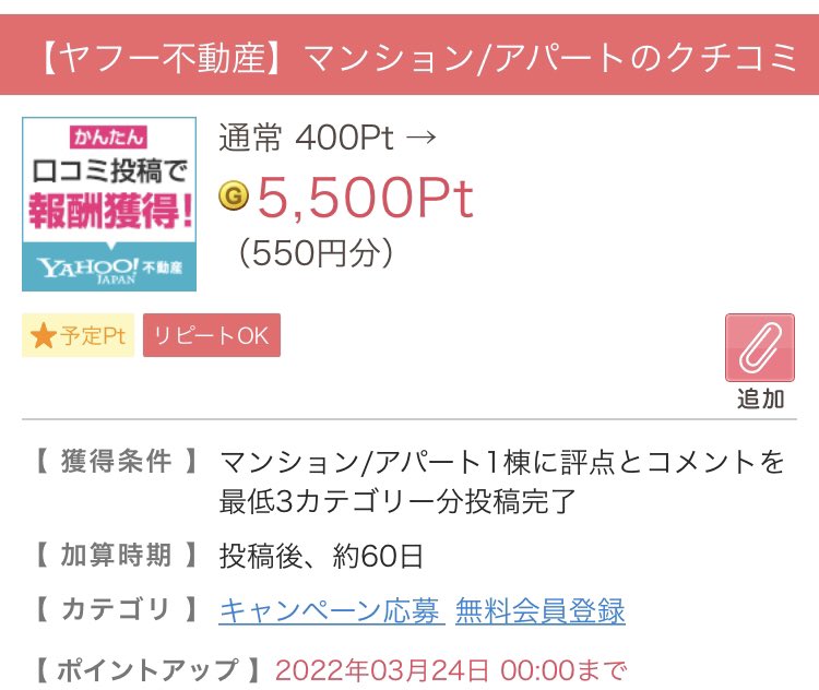 🉐ヤフー不動産口コミで1,650円分
