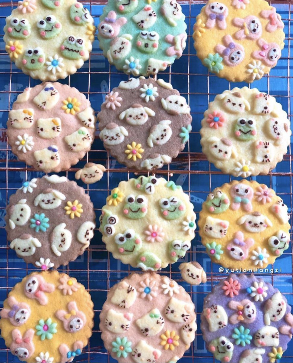 처음엔 (아래사진) 쿠키 위에 캐릭터 조각을 입체로 얹었다가 그 다음엔 (위 사진) 파내고 끼워서 구우심(과정샷도 있었던)