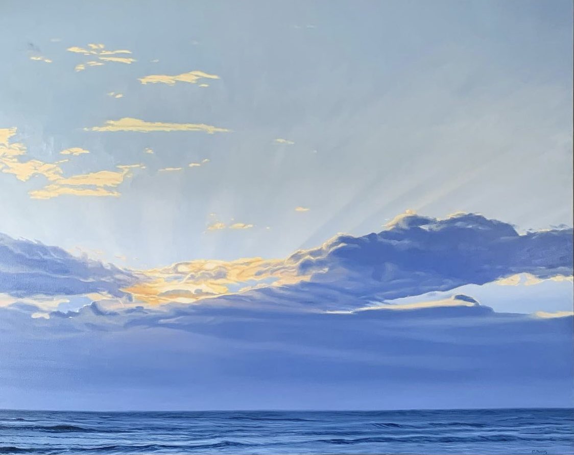 여름엔 적운과 적란운인데 올해엔 이상한 날씨들로 구경하기 어려웠다. 동시대 화가 중에 구름 그림 하면 제일 먼저 생각나는데 이 분 그림의 매력은 오렌지와 초록을 넣어 화려해지는 팔레트 twitter.com/cornerjn/statu…