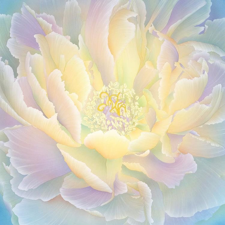 캔버스 대신 흰 세라믹 위에 채색하고 굽기를 여러번 해서 발색한 색의 그라데이션