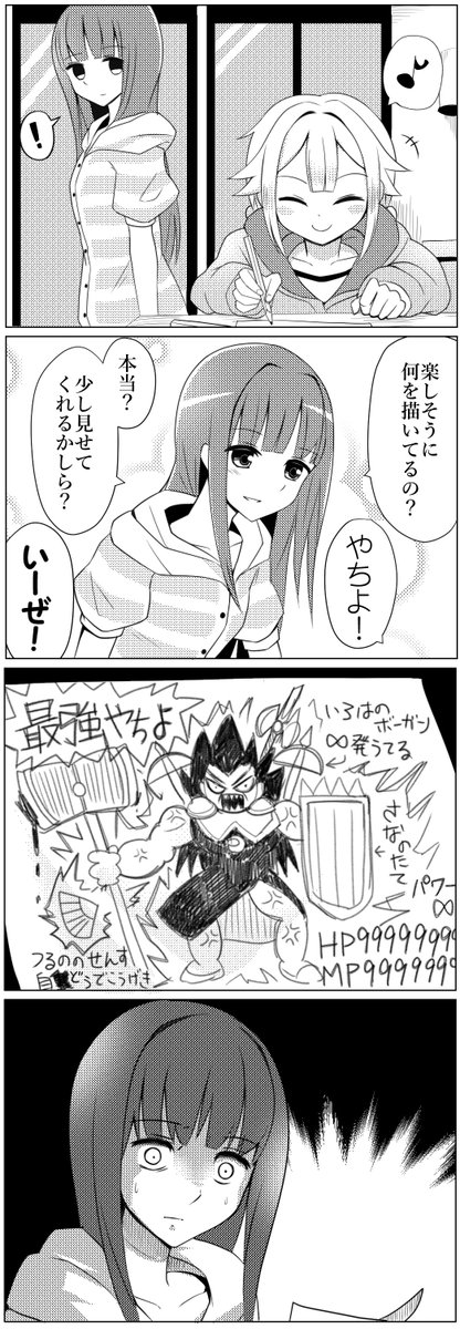 お姉ちゃんしつけ棒(?)を入手した月咲ちゃんとなぜか拘束されている月夜ちゃんです