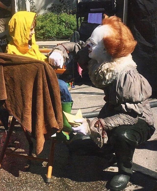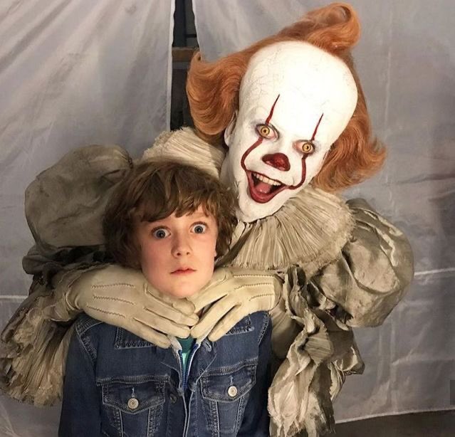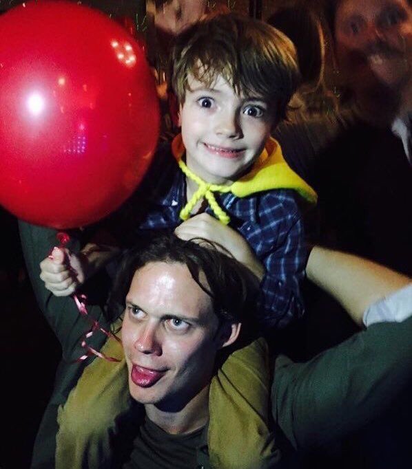 巨大なテディベアに飛び付くベネディクト・カンバーバッチと少し引いてるジョニー・デップ