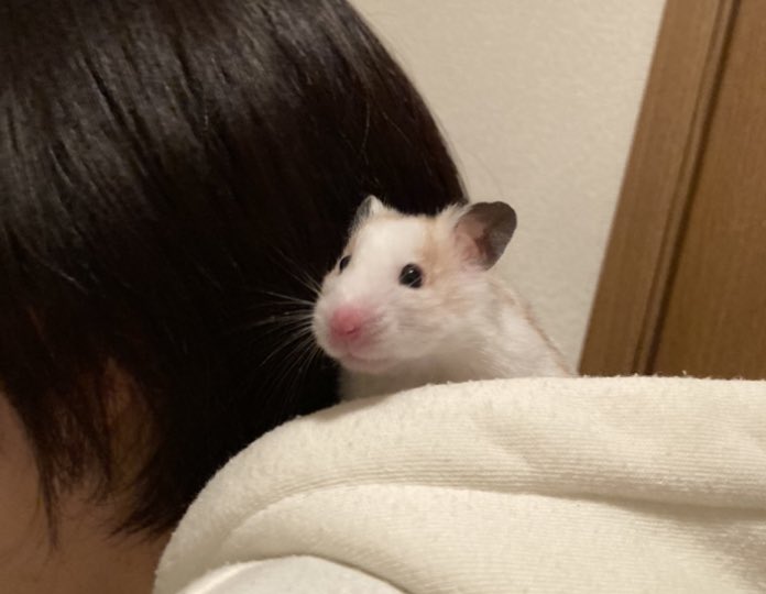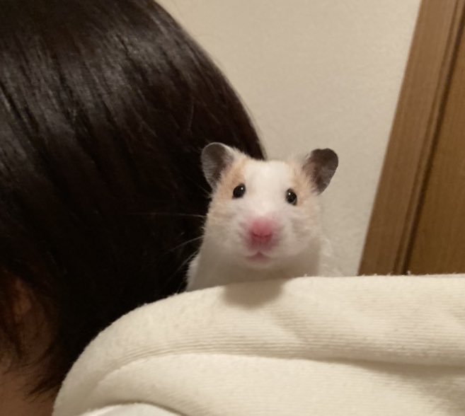 飼い主の背中でナイスな顔しとった 🐹ミケ🐹