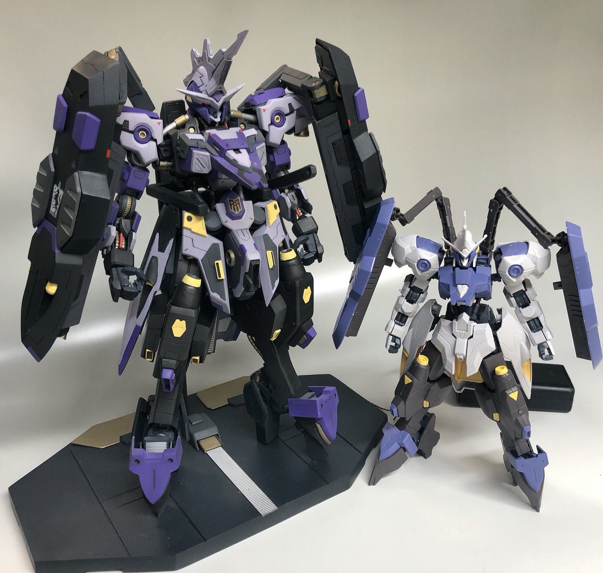 鉄血のオルフェンズではヒットマンの次に強いと噂の「ダインスレイヴ搭載機のグレイズ」完成です。サイズはフルメカなので1/100になってます。 #ガンプラ #ガンプラの画像を貼るとRTされると聞いて #g_tekketsu