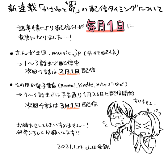 先行配信しているまんが王国、music.jpでは次回4話がもうすぐ(2/1)配信予定ですので、早めに読みたい方はこちらをご利用下さい!