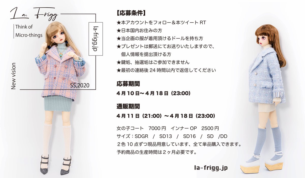 1名様今回 #アイドール東京 新作(for SD17/SDgrB&G/SD13/DD)、4アイテムの中に1セットを選んでプレゼント致します。