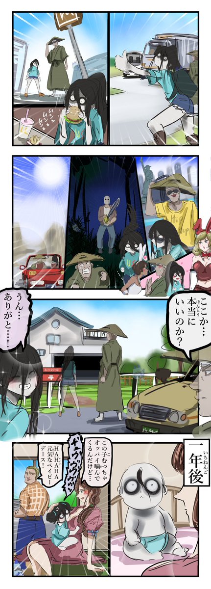 嬉しがる口裂け女。