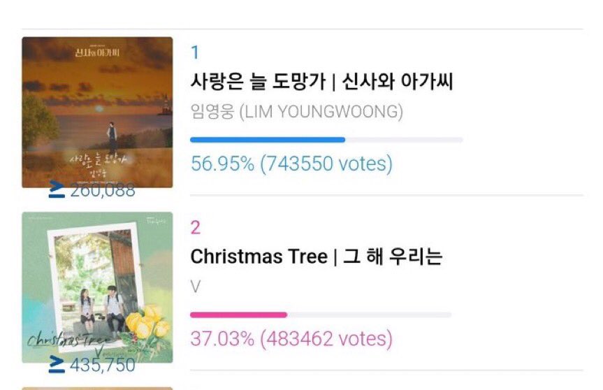 Armys please also do vote for Taehyung’s OST “Christmas Tree” in Idolchamp. He’s still in 2nd place with huge gap. Please keep in mind that the winner in this award will get a physical trophy. Let’s give it to taehyung please. 🥺🙏